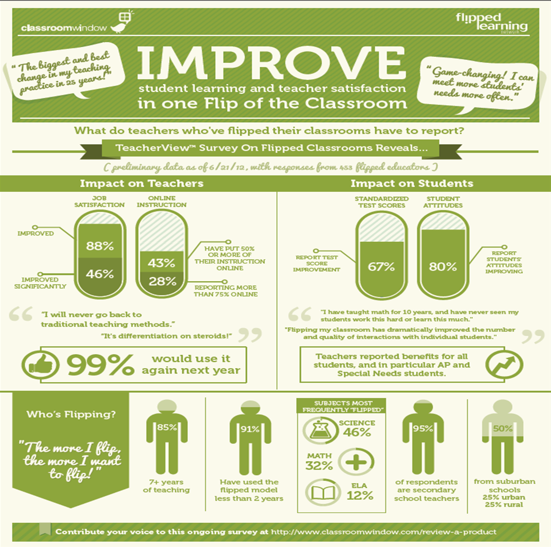 The results of this empowering of students and teachers can be seen in the infographic below from Flipped Learning, surveying teachers who have made the conversion.